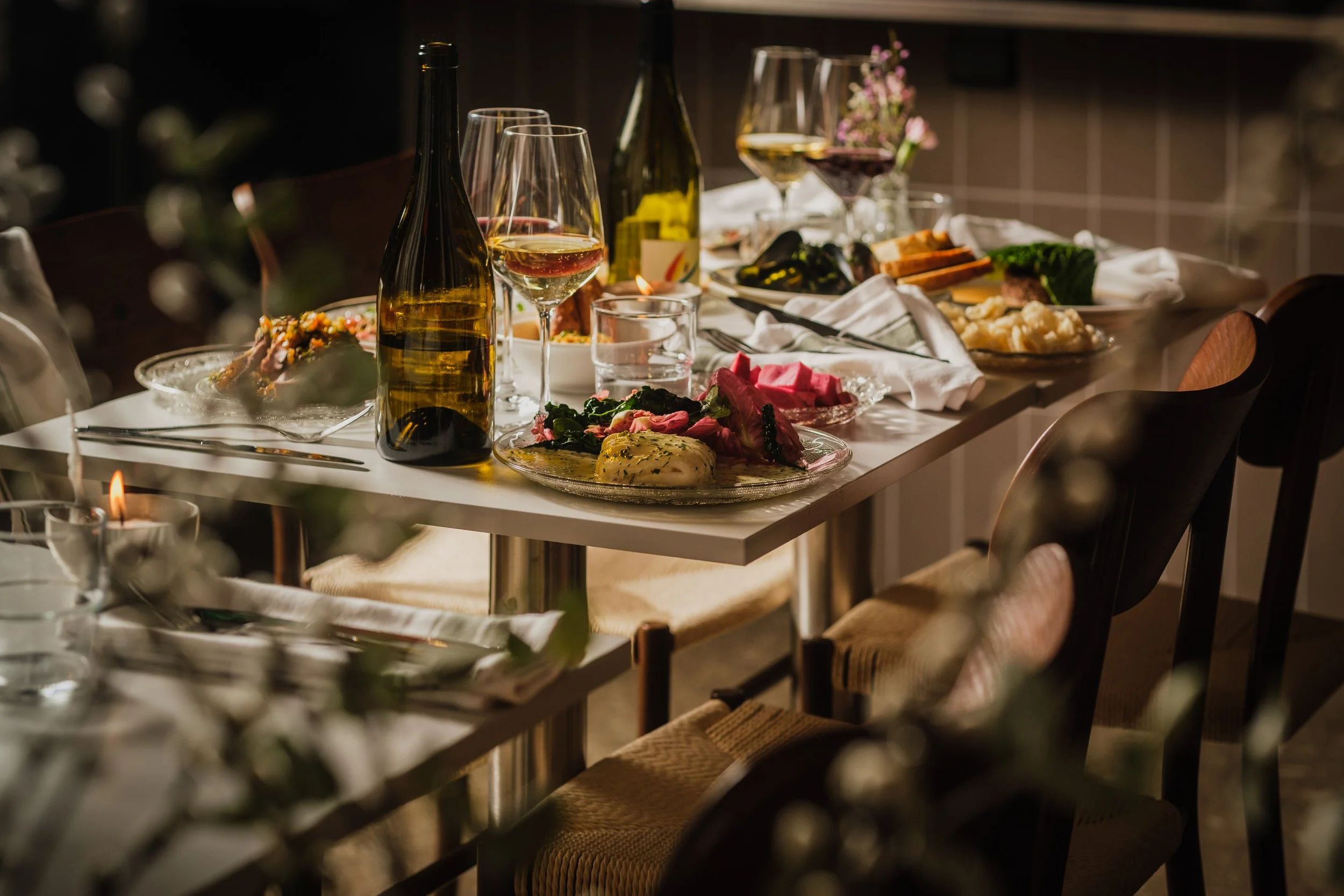 savoykål, smörad sky på confiterad vitlök, kyckling & lingongelé